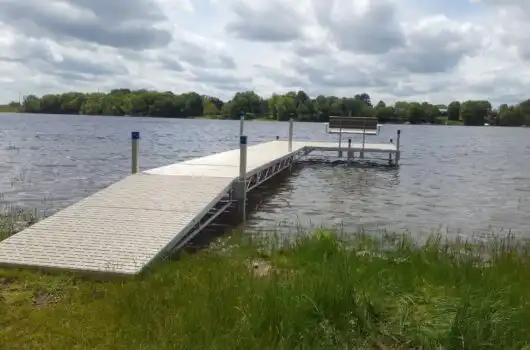 Roll-In docks or Wheel-In are the most popular style of boat dock sold in the Midwest region for many reasons. Ease of installation and removal is a leading factor, plus many manufacturers offer accessories and configurations to personalize the installation. Ideal installations for a Roll-In dock include properties that have a slight or gradual slope into the water, minimal water fluctuation, a sandy or firm lake bottom, and water depths that are less than 8 foot deep. A potential customer should have an ample storage area as most Roll-In docks are not dissembled into small sections for storage.