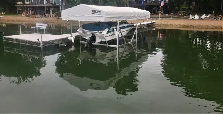- The V-Frame Lift Bed requires approx. 8" of water plus the draft of the boat instead of the standard straight rack version lift that requires approx. 11" of water plus the draft of the boat.