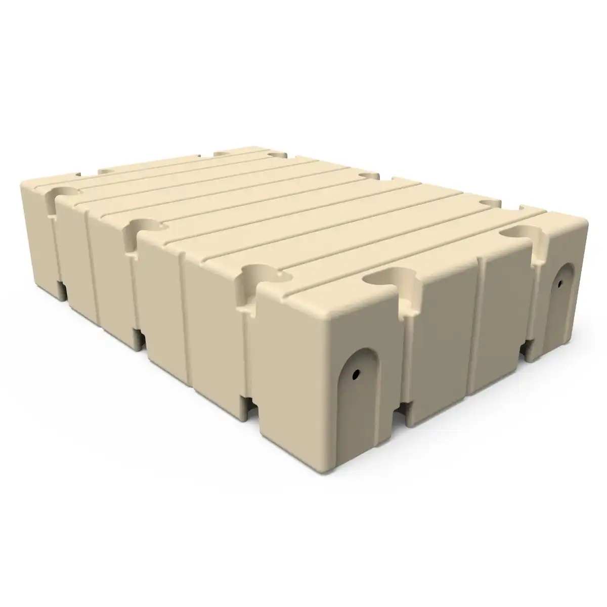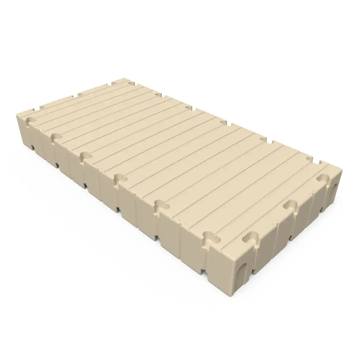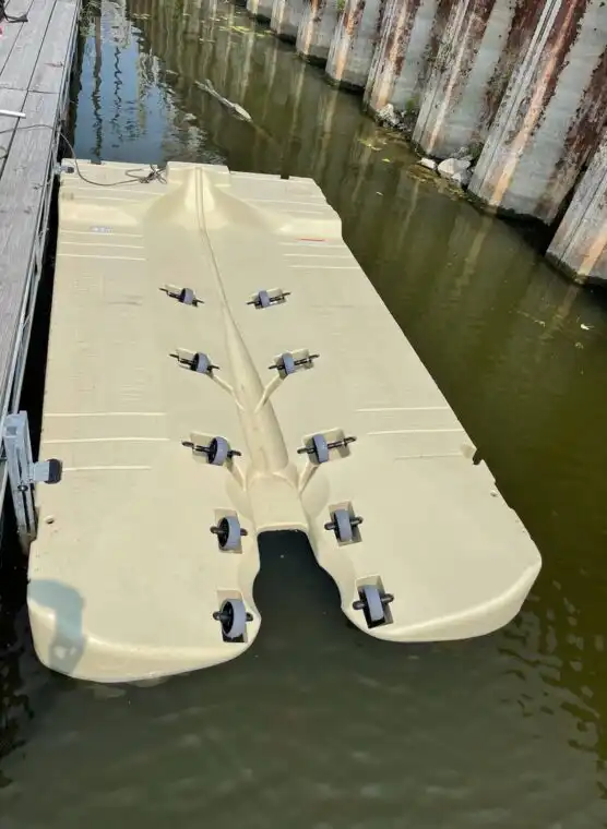 EZ Dock sections are of one-piece design, and their underside utilizes indentations or pylon areas. These pylons create a suction or vacuum effect, which enhances the stability of the floating system. When you walk from one end of a EZ Dock system to the other, you receive the benefit of both the "up" buoyancy flotation as well as the suction or "pull down" effect.