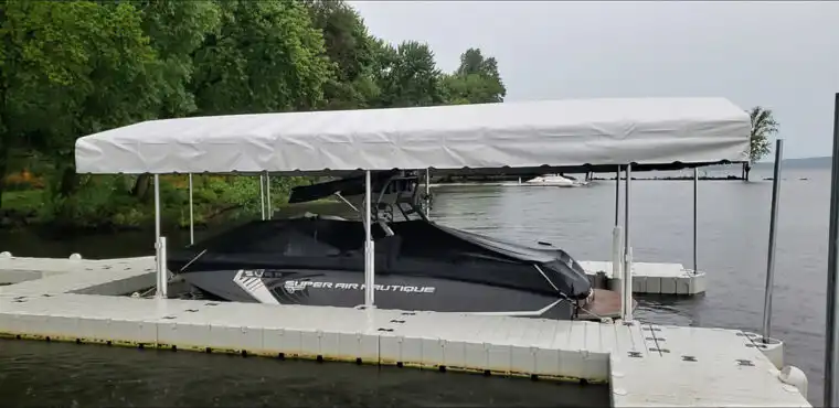 While many floating canopies are set up where no lift is required, we are still able to offer floating lifts along with canopies over them.