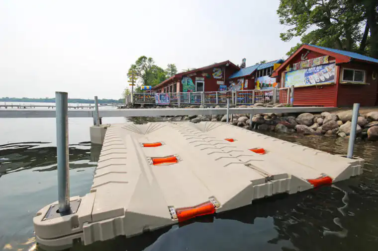 ShorePort, a drive on jet ski dock, is easy to use and easy to own too. Simple drive on, push off functionality, maximizes your time on the water. Plus, ShorePort’s modular, rotationally molded construction means it is virtually maintenance-free. ShorePort can be attached to nearly any floating dock system, and ShorePort works great with any standing or wheel-in style dock system. Position the ShorePort Waverunner dock alongside or perpendicular to your dock system for quick and convenient access to your jet ski or wave runner. ShorePort can be used as a stand-alone drive-on jet ski dock, or you can connect multiple ShorePorts for additional stability and PWC storage. Whether you are storing a single personal watercraft at your residential lakeshore property or a whole fleet of personal watercraft at a marina, resort, or campground, you will be glad you chose ShorePort to protect the investment you have made in your personal watercraft.